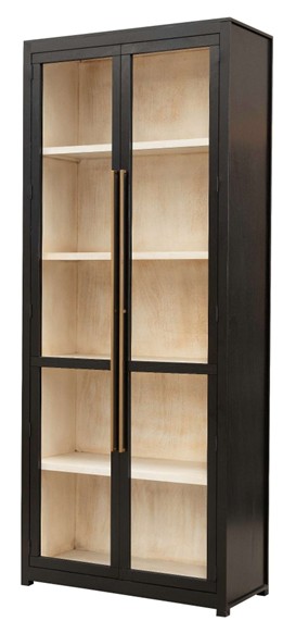 The Langford 96″ Curio is a striking display piece that combines modern refinement with timeless presence. Towering in height, it features a bold black frame that contrasts beautifully with the warm color of the interior shelving. The design is anchored by clean lines and framed glass doors that lend both openness and sophistication. Long, sleek vertical handles add a contemporary touch, enhancing the cabinet’s tall, statuesque silhouette. Perfect for displaying dinnerware, collectibles, or décor, this tall curio makes a refined statement in any living or dining space.
